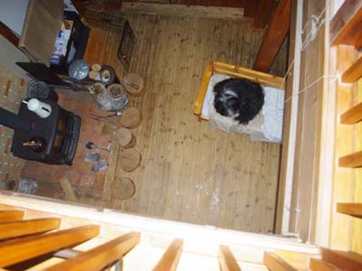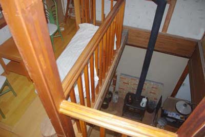 玄関ホールから2階客室へ。 階段は滑り止めマットを敷いてあります。 |