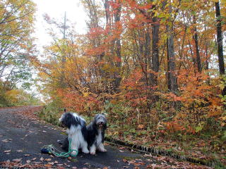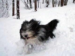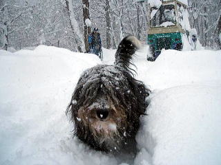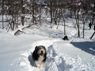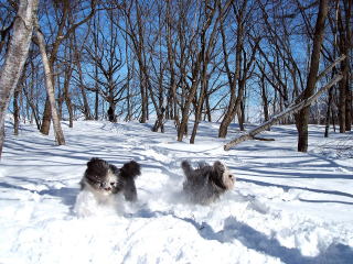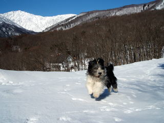 雪玉一杯付けて、雪のお散歩。楽しいな♪