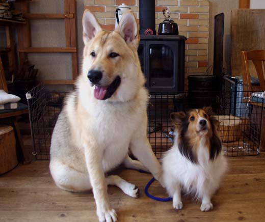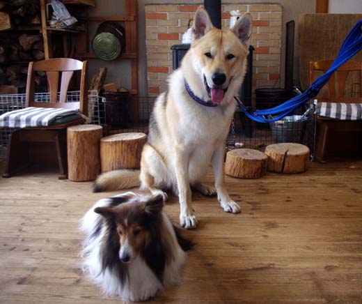 ウルフドッグのロア君(左)。