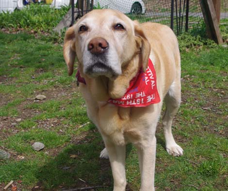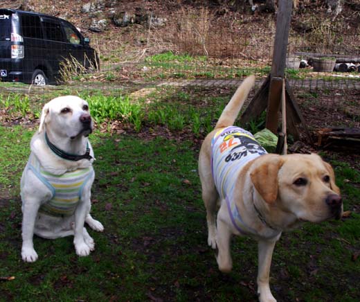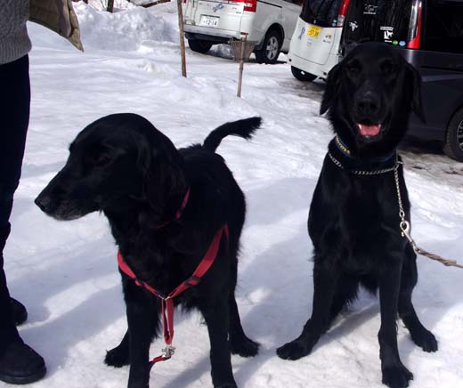 ラブラドールレトリバーのまいるちゃん(右)、